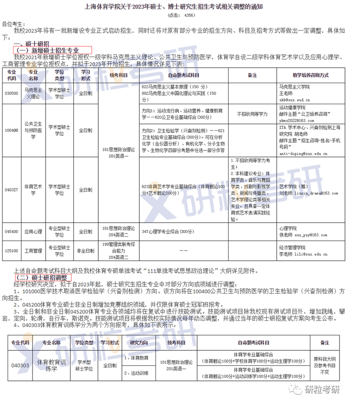 北京体育大学新闻传播学学硕,汉语国际教育、应用心理、电子信息、工商管理专硕2023年开始招生。