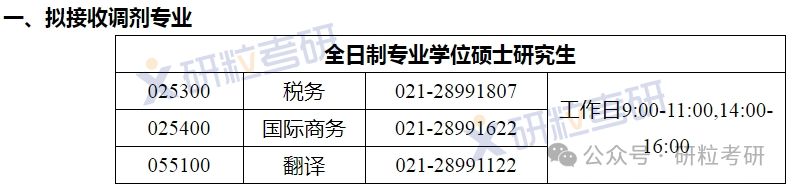 14 上海海关学院025300税务、025400国际商务、055100翻译拟接收调剂。