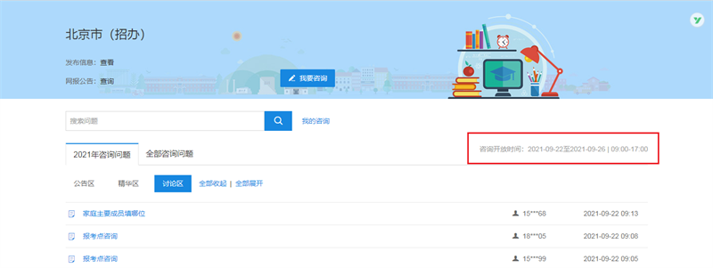 按照教育部规定,22考研网上咨询周是在9月22日-26日进行。但是需要注意的是各省、各招生单位的具体答疑时间是可能不一样的,有些省份的答疑只有2-3天,有些院校的答疑时间只有3小时(如清华大学09:00-12:00),以免错过咨询时间。