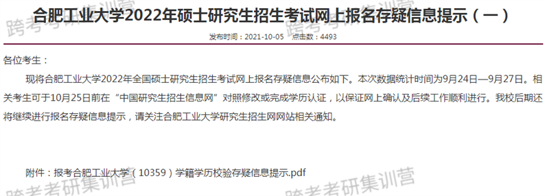 10月5日,合肥工业大学公布了第一批网报学籍学历校验存疑信息名单,共50名考生。