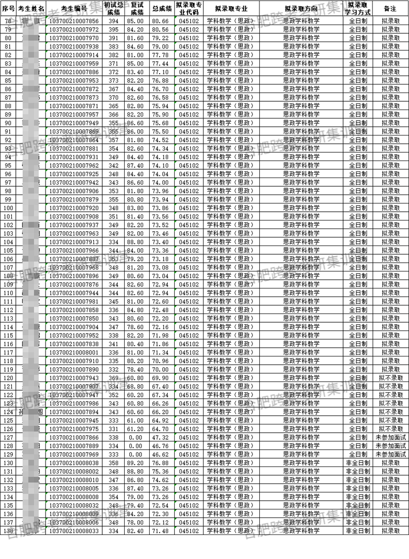 安师大学科教学(思政)近三年招生人数递增,复试线也越来越高,全日制生源充足,近3年都无调剂,推免比例也很低,综合来看,还是很保护一志愿的。全日制近3年录取平均分350+,21年更是达到了380+,有意向的同学考360左右会比较稳妥。