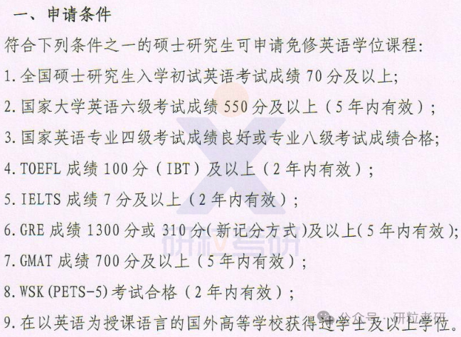 天津医科大学关于2024级全日制硕士研究生免修英语学位课程的通知:只要在考研初试时英语成绩不低于70分,或者满足以下条件之一的,即可申请免修。