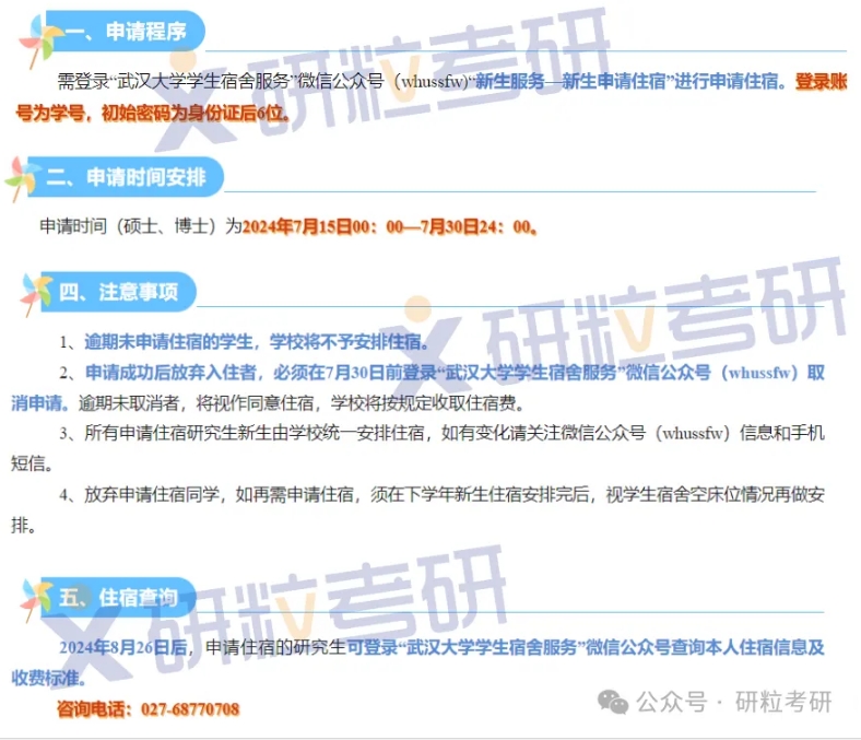 关于住宿安排部分,2024级研究生新生(硕、博)床位网上申请(2024年8月27日8:00—8月28日8:00),凡符合学校住宿安排条件的研究生新生需在规定时间内登录网站申请床位。请同学们及时申请,床位申请完,系统将不再接受床位申请,也不再安排住宿。