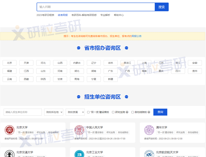 今天2023硕士研究生报名网上咨询正式开始,各省招办和招生单位都在研招网开通了招生咨询窗口,在线为考研人答疑。
