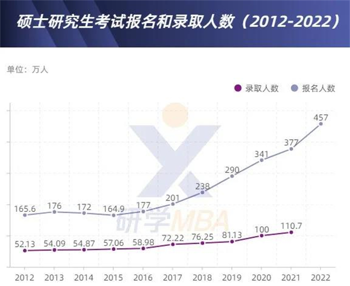 2022年考研报名人数再次刷新记录,创下了457万的高峰。